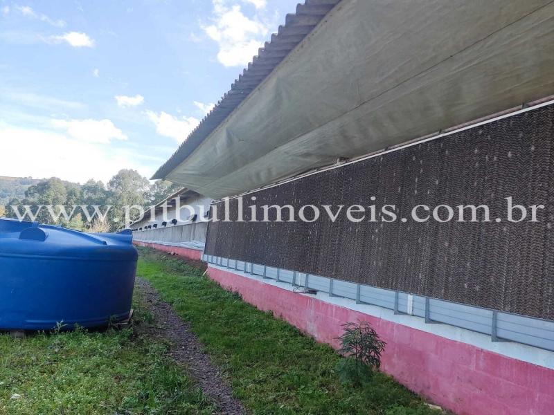 Benfeitorias incluídas: Aviário completo em funcionamento credenciado pela BRF - Tamanho: 1750 m². Galpões: ordenha, alimentação,maquinários e um anexo ao aviário com fornalhas e depósito; Árvores frutíferas; Grandes áreas para plantio Casa de alvenaria com mais de 150 m² com área de lazer, incluindo salão de festas e piscina; Casa em madeira com varanda (70 m²); 02 açudes; Trator com concha 2020 apenas 1000 horas trabalhadas; 30 vacas leiteiras. Propriedade com vertentes e fontes de água. Local com Sistema de Monitoramento.