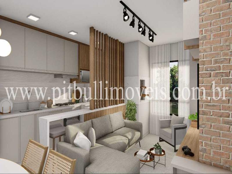 Cozinha, lavanderia, sala e banheiro - piso porcelanato; Dormitórios - piso laminado;